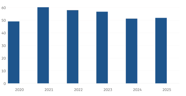 Số liệu năm 2025 tính đến nửa đầu năm. Nguồn: Visible Alpha, Man Group