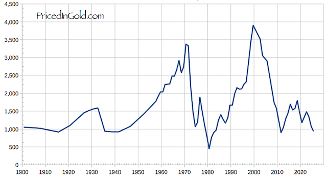 Chỉ số Dow Jones định giá bằng vàng năm 2025 còn cách rất xa đỉnh lịch sử.
