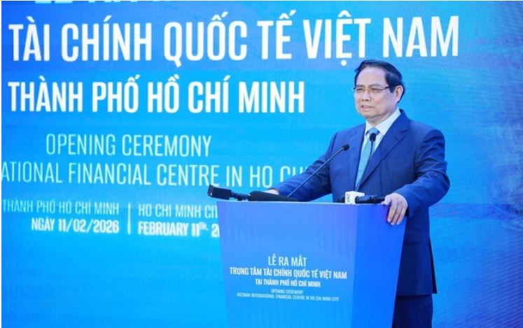 Thủ tướng Phạm Minh Chính phát biểu chỉ đạo tại lễ ra mắt Trung tâm tài chính quốc tế Việt Nam.. (Ảnh: Dương Giang/TTXVN)
