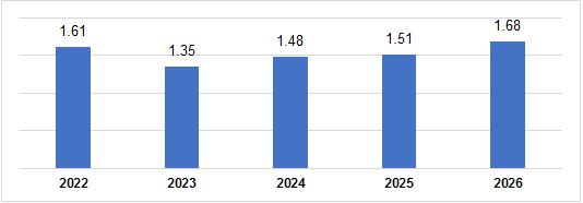 Vốn đầu tư nước ngoài đăng ký vào Việt Nam tính đến ngày 31/01 các năm 2022-2026 (Tỷ USD)
